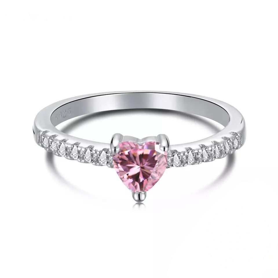 Anel princesa coracao rosa claro em prata 925 legítima