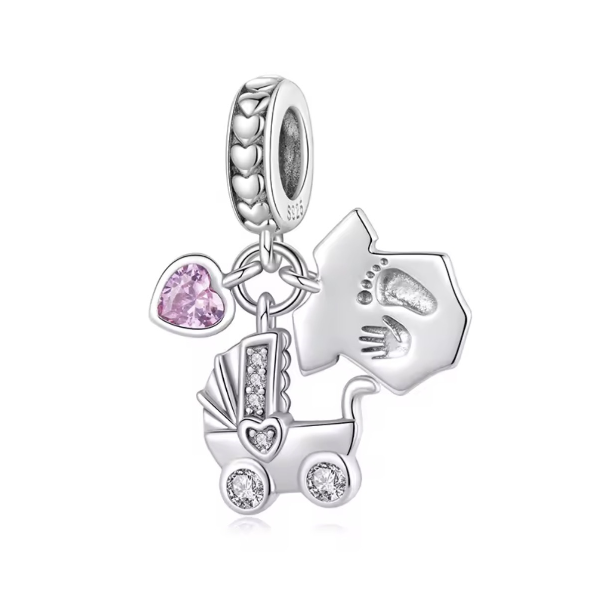 Berloque carrinho de bebe prata legítima 925 Eternal Joias