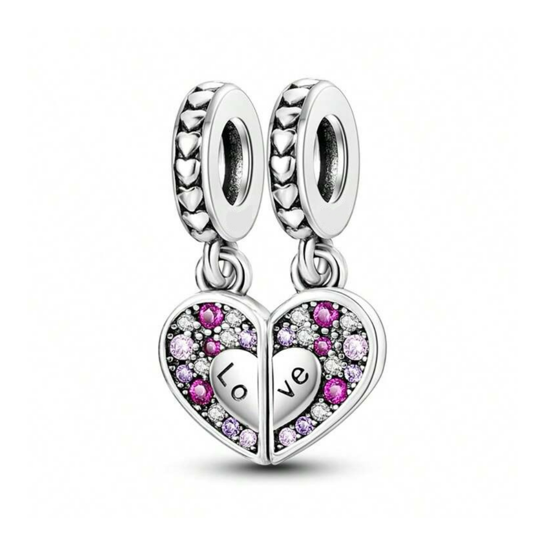 Berloque pendente simbólico e cheio de significado, representando o laço eterno entre mãe e filha. O conjunto é formado por dois pingentes, cada um em formato de metade de coração: uma metade traz a palavra “Mother” e a outra “Daughter”.