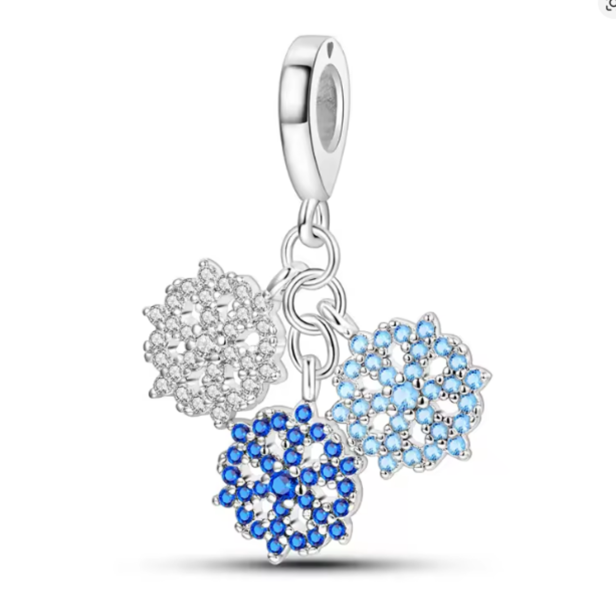 Detalhes: Encanto e elegância em cada detalhe! Esse berloque em Prata possui três delicados pingentes em formato de flocos de neve, cravejados com zircônias em diferentes tons: branco, azul-claro e azul-escuro. O contraste das cores cria um efeito sofisticado e cheio de brilho, perfeito para iluminar qualquer composição na pulseira.