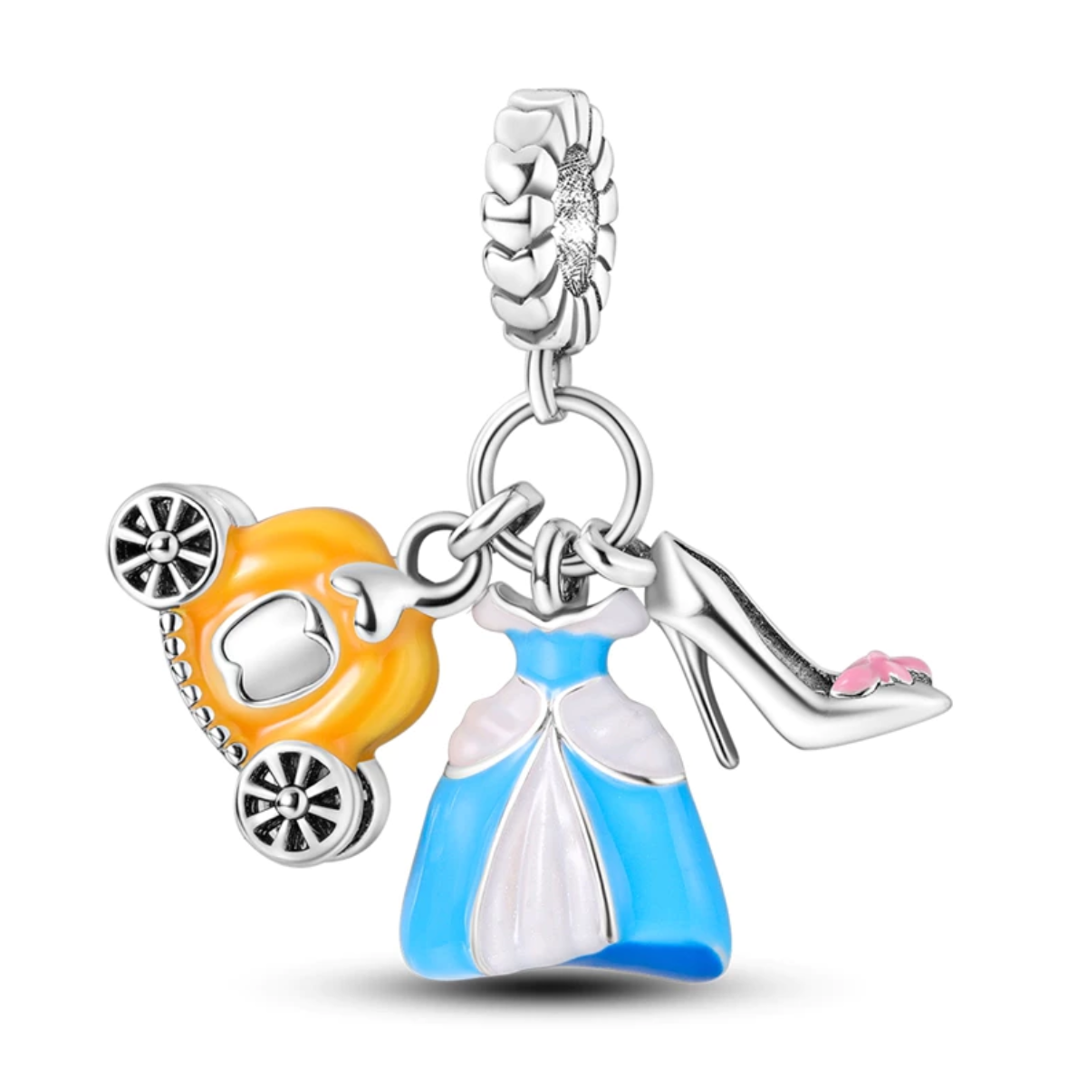 Detalhes:Berloque em prata 700 inspirado em contos de fadas, com três charms encantadores: um vestido azul com detalhes esmaltados, uma carruagem dourada e um delicado sapato de cristal com laço rosa. Uma peça mágica e cheia de charme, perfeita para quem ama o universo das princesas e sonha com finais felizes.