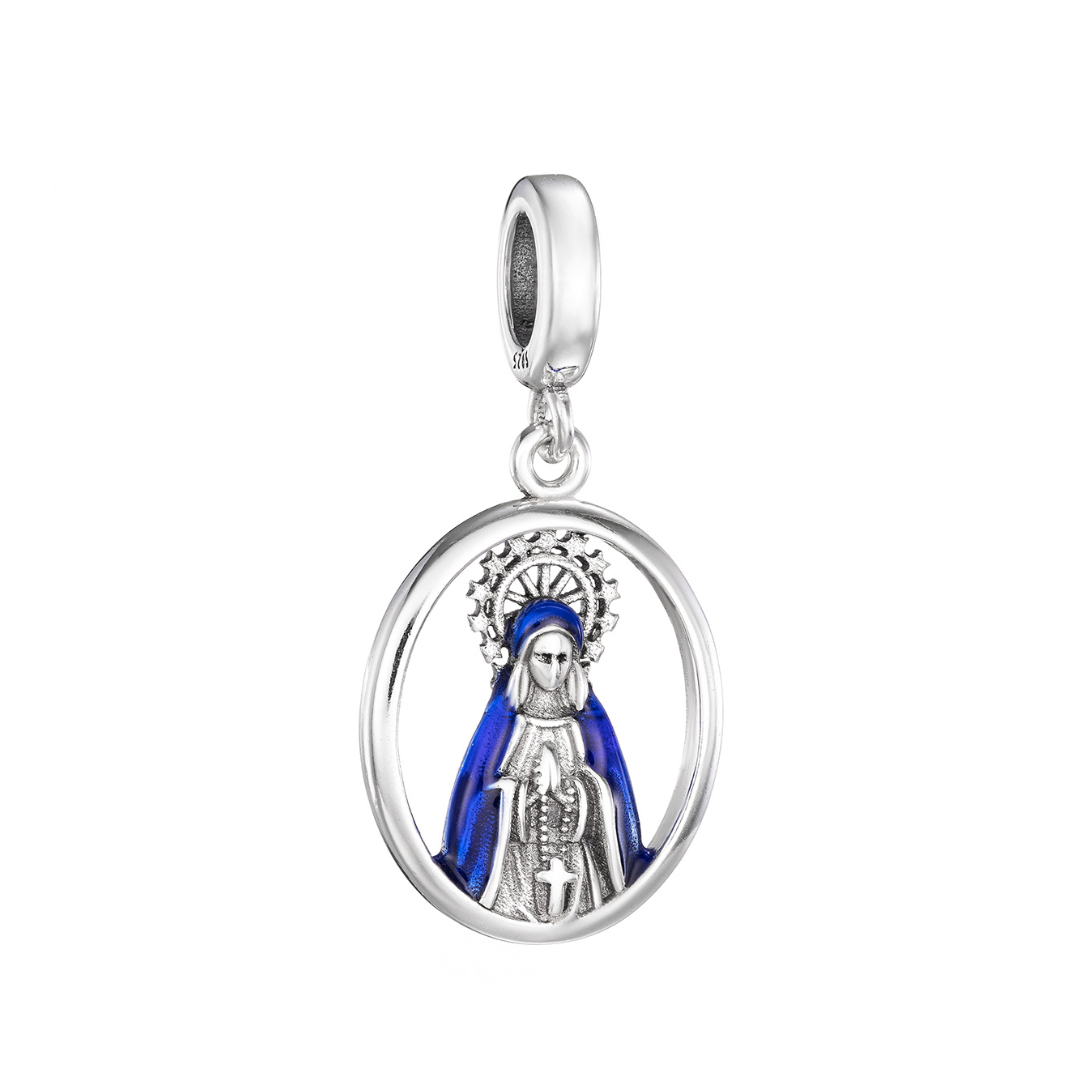 Berloque Nossa Senhora Aparecida em Prata 925 com esmalte azul. Peça delicada e resistente, ideal para expressar fé e devoção com elegância.