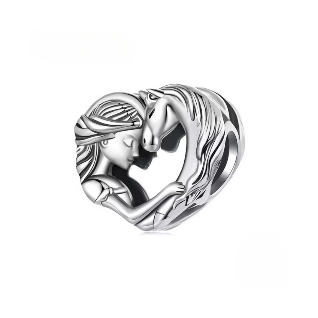 Berloque em Forma de Coração (Menina e Cavalo)
