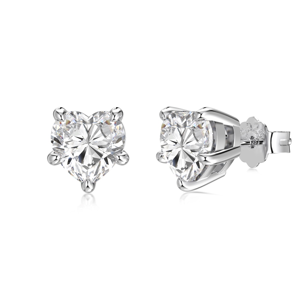 Brinco ponto de luz coração pedra 6.5mm prata legítima 925