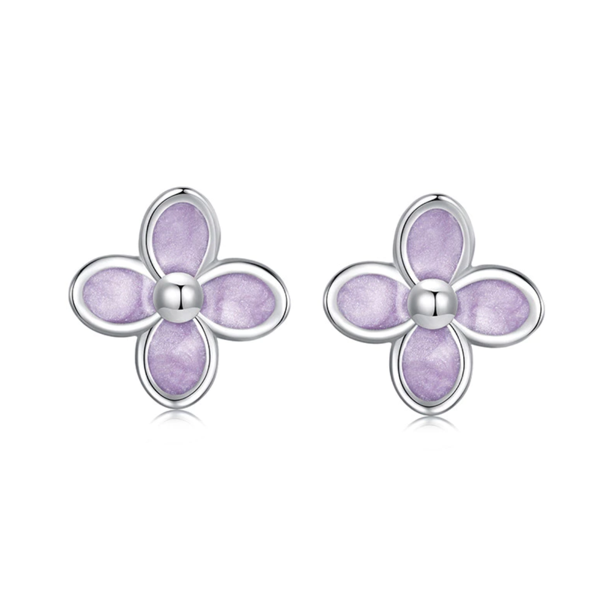 Brinco Pequeno Flor Lilás Prata Legítima 925 Eternal Joias