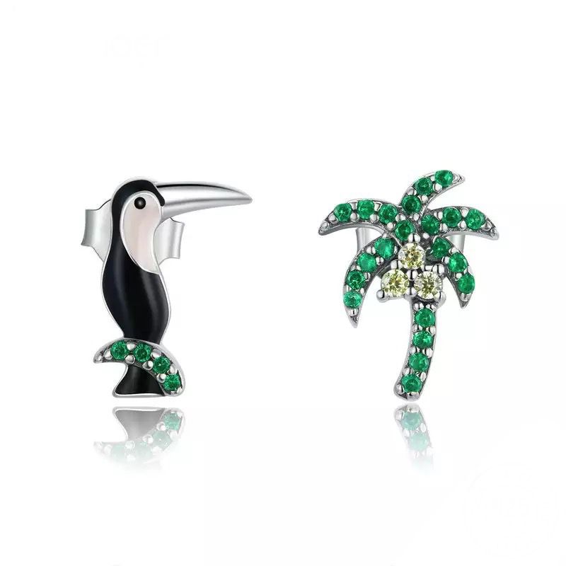 Brinco Tropical Coqueiro e Tucano Em Prata 925 legítima