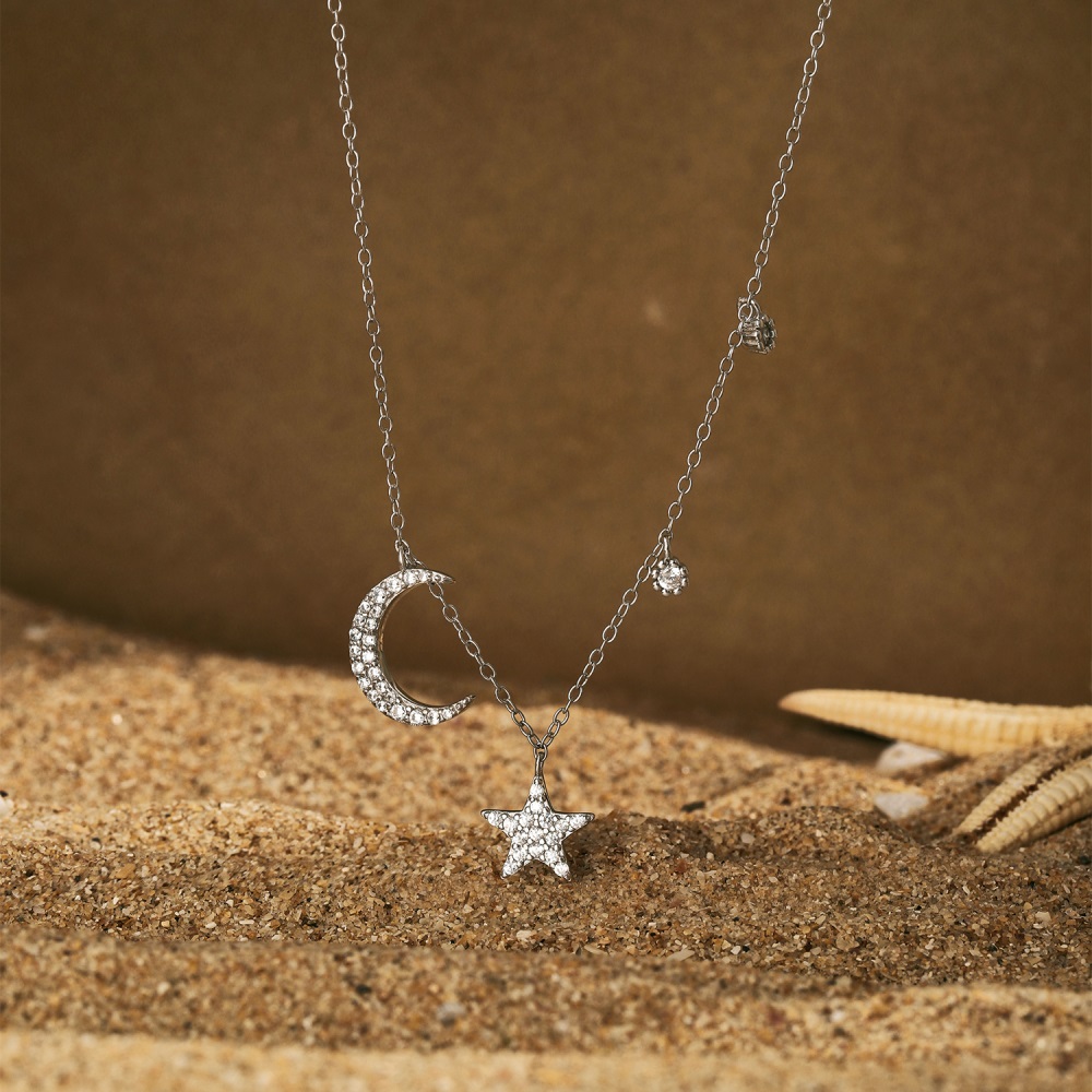 O Colar Lua e Estrelas em Prata 925 é a escolha perfeita para quem busca uma joia delicada, elegante e cheia de significado. Inspirado no brilho do céu noturno, seu design destaca pingentes de lua e estrelas que simbolizam proteção, luz e boas energias.
