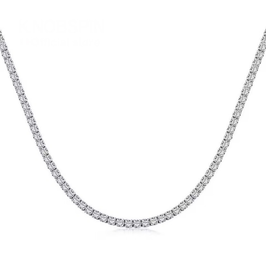 Pedras de Moissanite: Este colar é adornado com pedras de moissanite de 3 mm com 4 garras, cada uma pesando 0,10 CT. As moissanites são conhecidas por sua clareza e brilho, que rivalizam com os diamantes naturais, oferecendo um toque de luxo acessível.