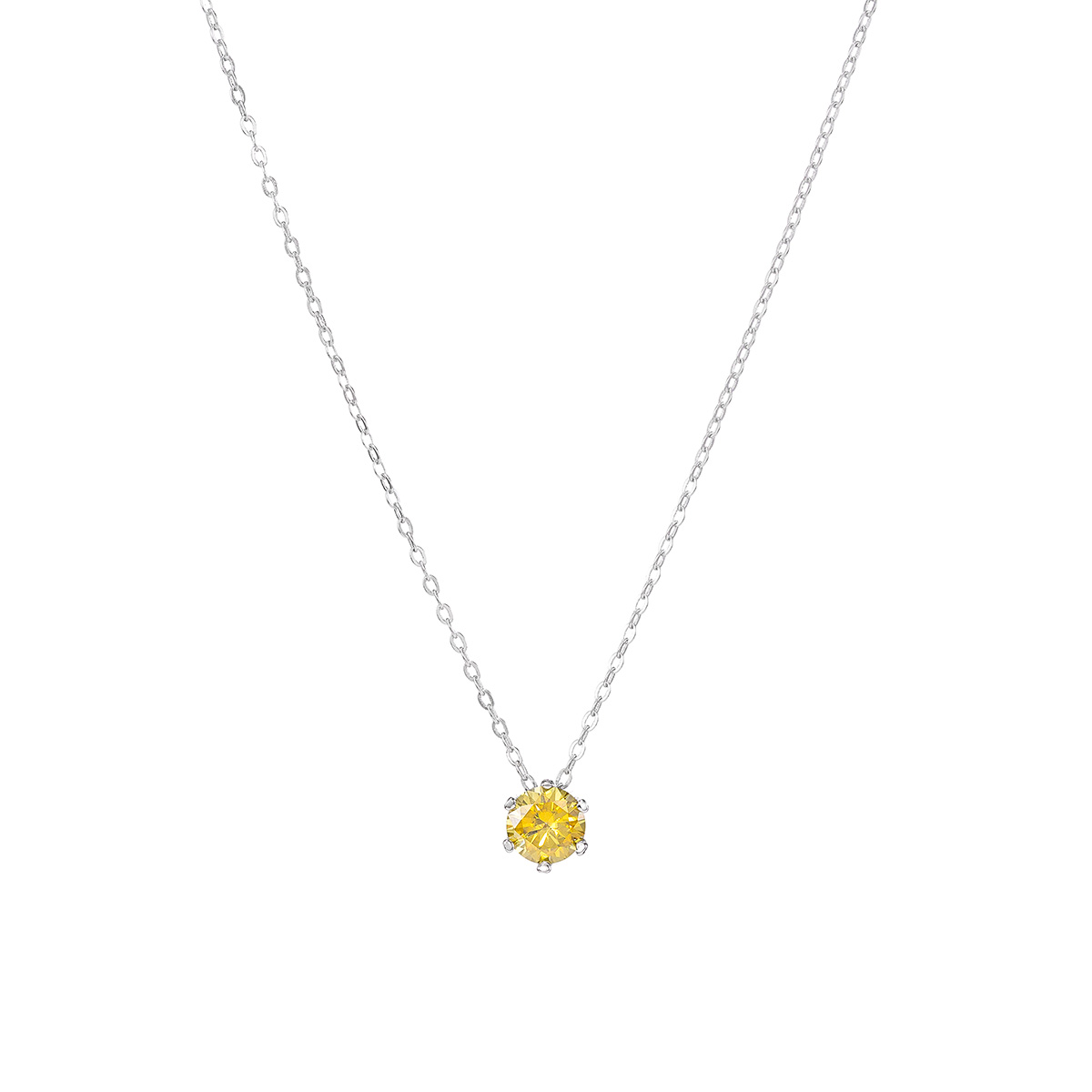 Colar ponto de luz com pedra Yellow Fancy de 6,5 mm (1,0 ct), presa por 6 garras que valorizam o brilho e garantem segurança. O fecho boia oferece praticidade. Acompanha certificado GRA, garantindo a autenticidade da pedra.