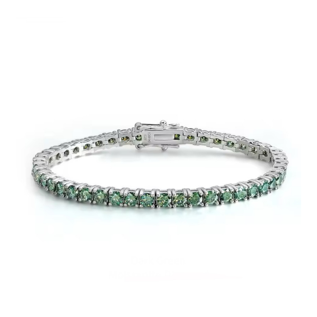 Riviera de Moissanites Verdes, com design elegante e sofisticado. Cada pedra é cuidadosamente posicionada e possui uma trava nas laterais, garantindo ainda mais segurança e estabilidade à peça. O brilho único dos moissanites, com seu tom verde vibrante, cria um efeito impressionante que combina perfeitamente com qualquer estilo, trazendo um toque de luxo e confiança. Ideal para quem busca uma joia que une beleza, segurança e durabilidade.